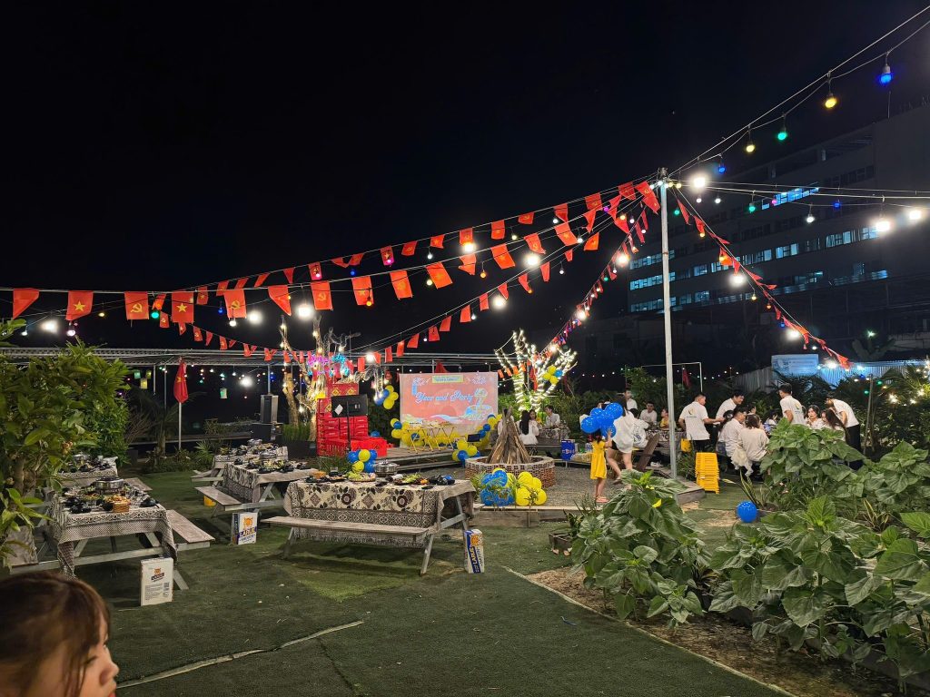 Không gian outdoor mang đến cảm giác tự do, thoải mái và rất phù hợp cho các hoạt động vui chơi, team building, hoặc các trò chơi dành cho trẻ em. Khách mời có thể tự do di chuyển, chụp ảnh tại nhiều góc đẹp khác nhau mà không bị giới hạn về không gian.