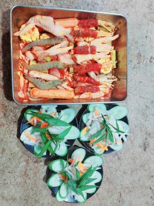 Thực đơn khai vị thường bao gồm các món nhẹ nhàng như gỏi cuốn tôm thịt, , salad rau củ organic tươi mát với sốt đặc biệt, và các loại trái cây tươi theo mùa được bày biện đẹp mắt. Đây là cách tuyệt vời để kích thích vị giác trước khi thưởng thức các món chính.